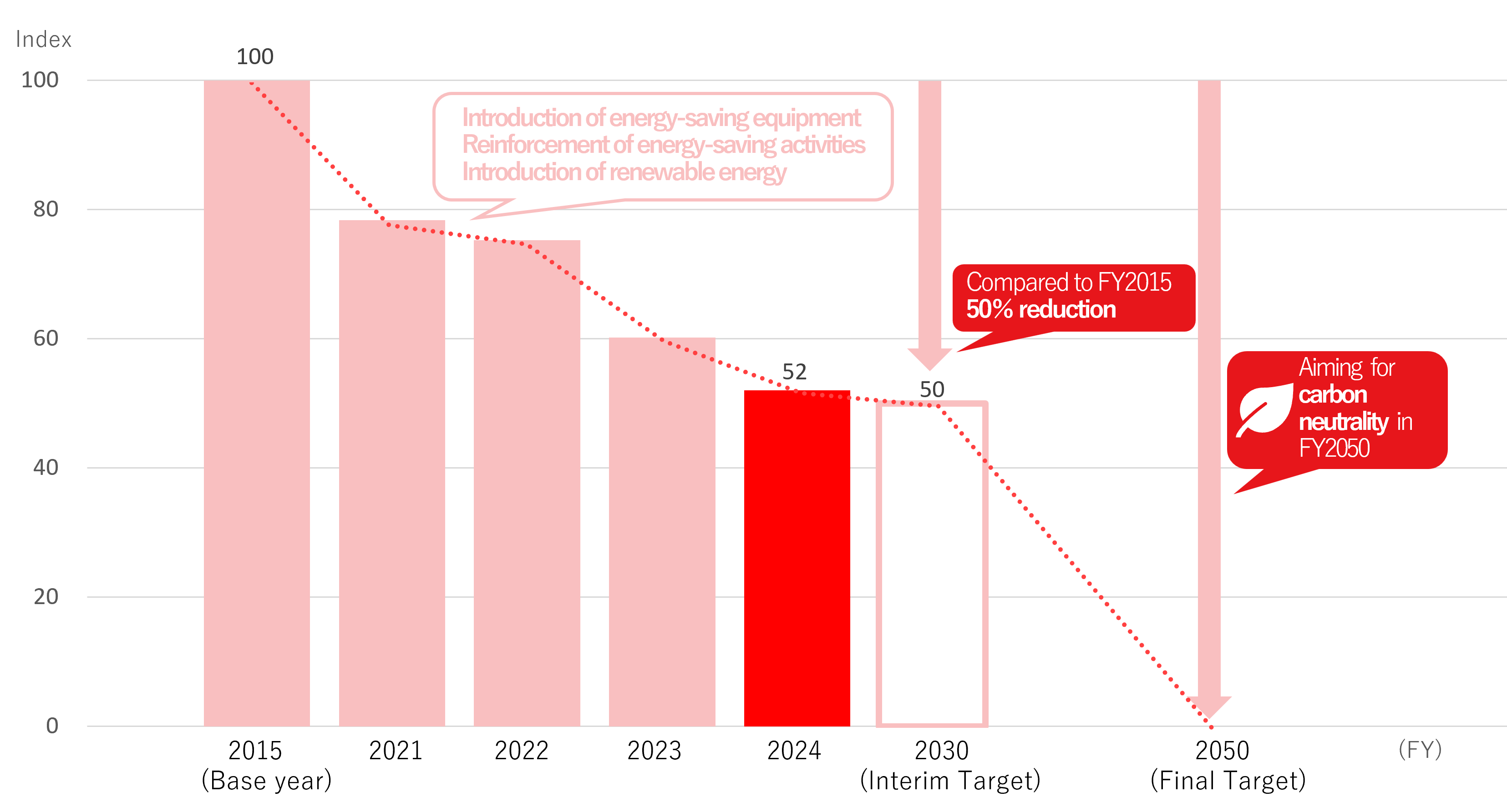 We are also working to achieve 50% reduction in CO₂ emissions (compared to FY2015) by FY2030 and carbon neutrality by FY2050.