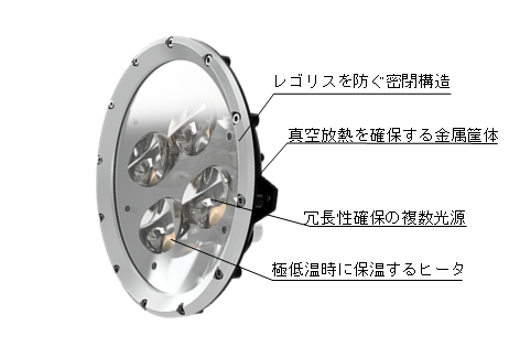 そこで、極低温環境下でも安定動作を維持する保温ヒータ、真空に対応する放熱構造、冗長性を備えた複数光源など、高い信頼性を確保する技術開発に取り組んでいます。